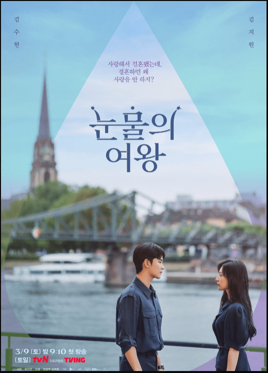 눈물의 여왕은 재벌 3세인 백화점 오너 '홍해인(김지원)'과 평범한 변호사인 "백현우(김수현)가 결혼 3년 차인 시점