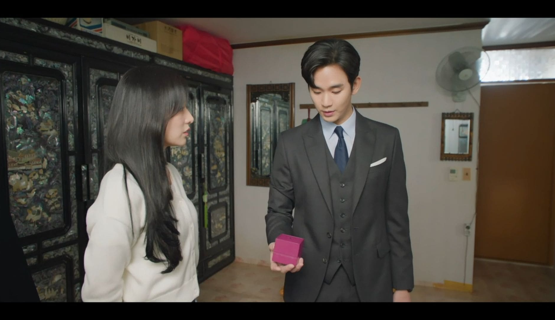 출근을 한 줄 알았던 현우가 반지를 가지러 들어오고