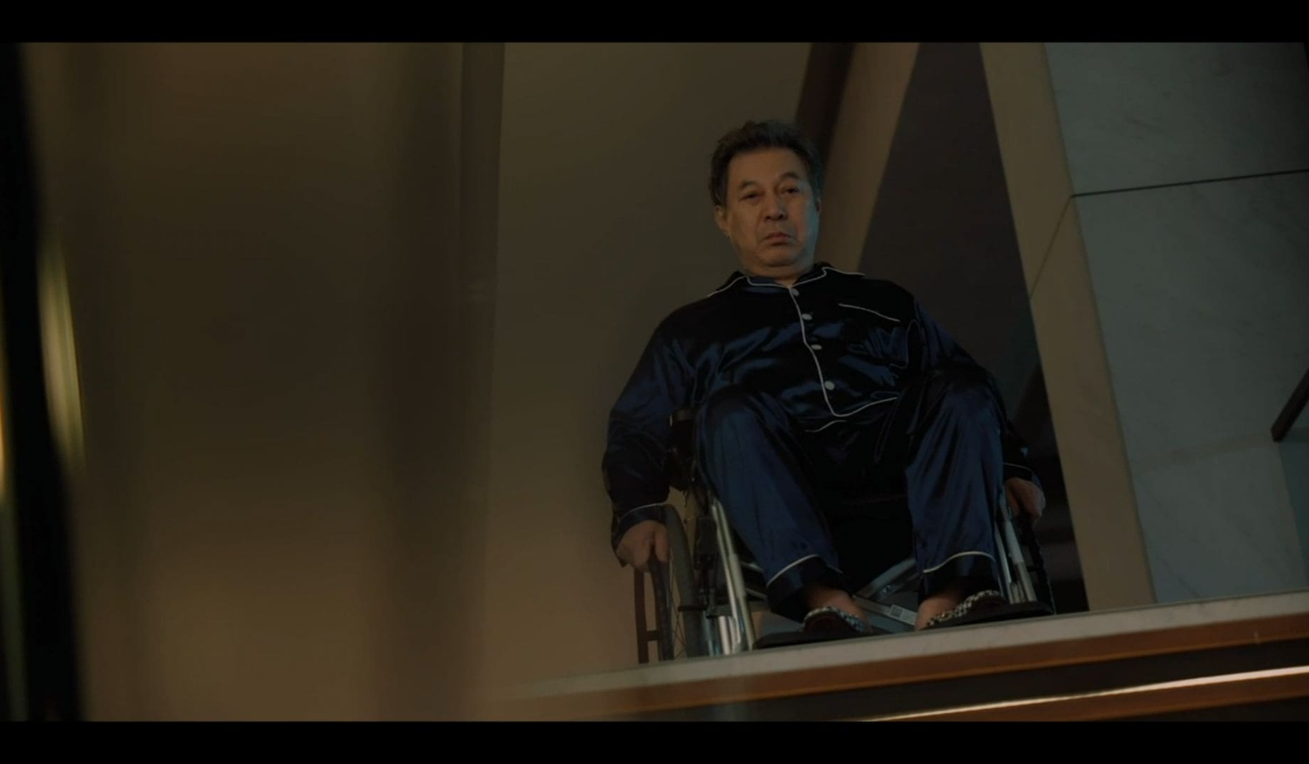 결국 홍만대 회장은 휠체어를 끌고 계단으로 갑니다.