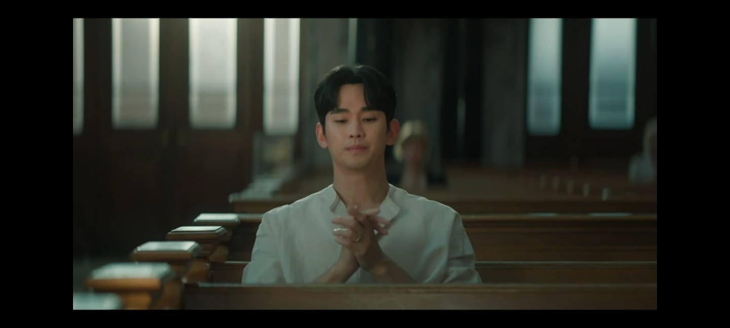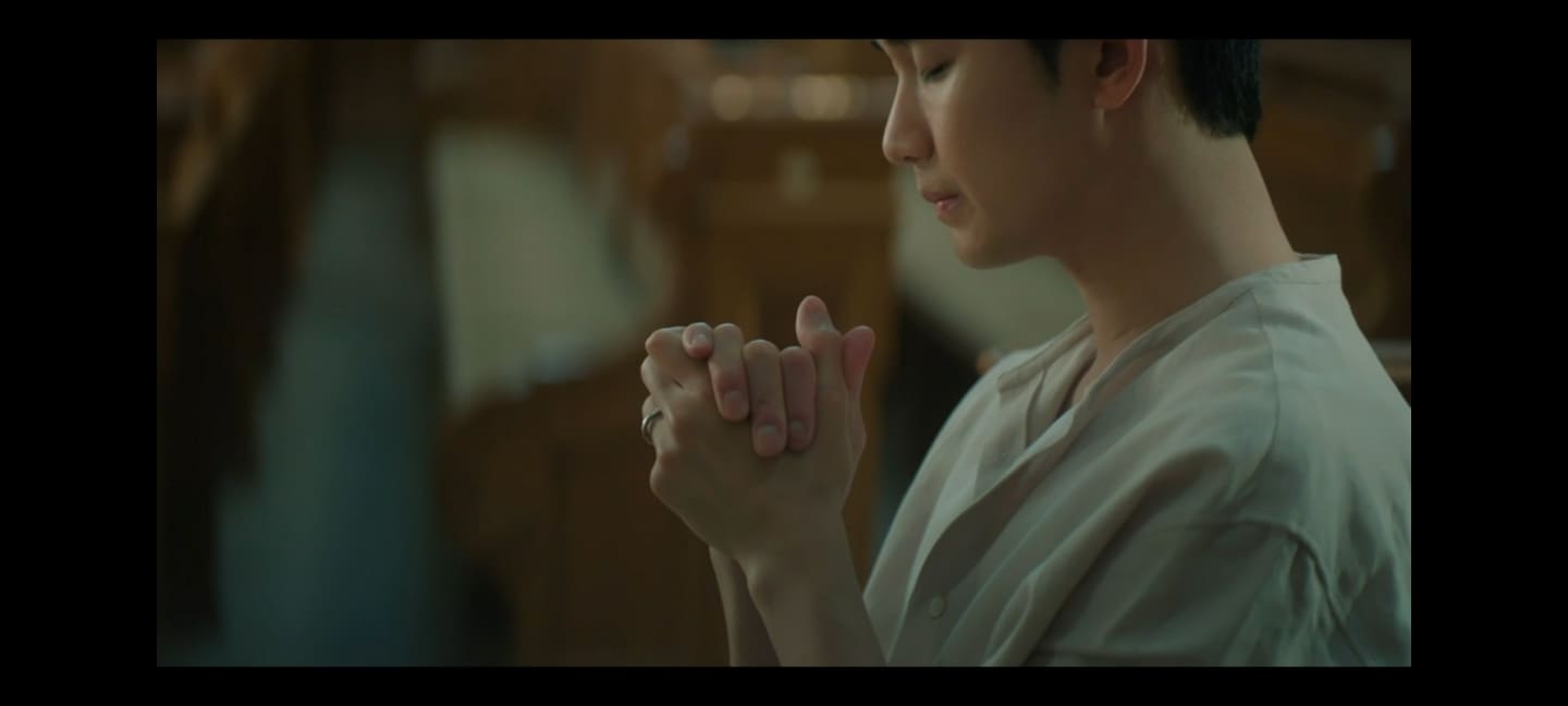 일어난 현우는 해인을 바라보고 이어서 성당에서 기도를 합니다.