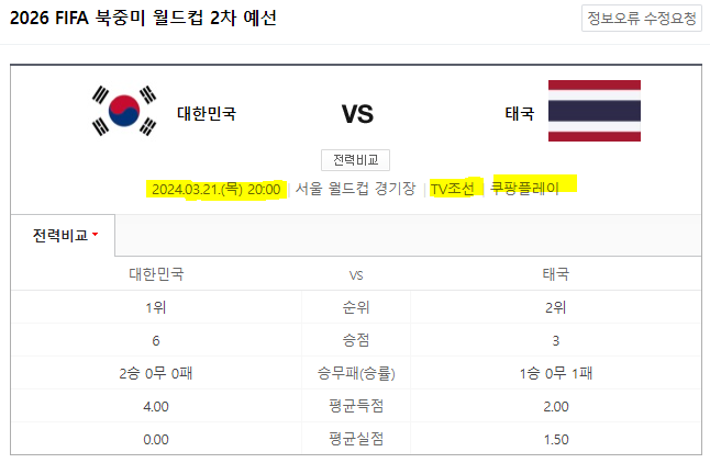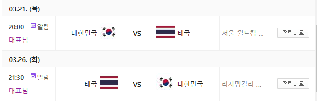 오늘 (3월 21일) 월드컵 2차 예선, 태국전이 8시에 시작된다.